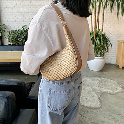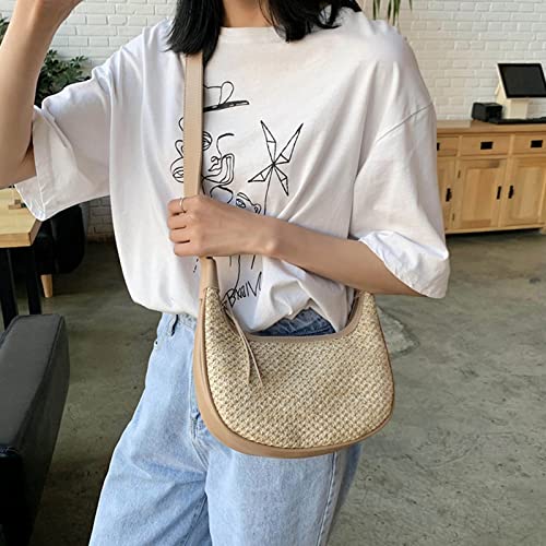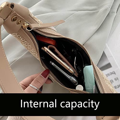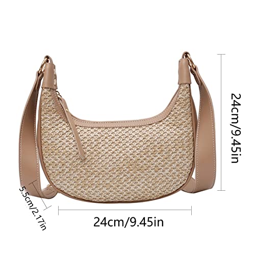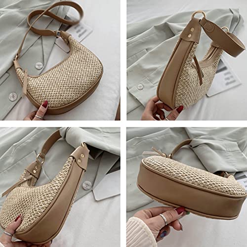 Specification: Handgeweven schoudertas, voor lente en zomer Retro nieuwe strozak voor dames, modieuze messenger-tas. (Color : Khaki, Size : 9.45in*9.45in*2.17in)
