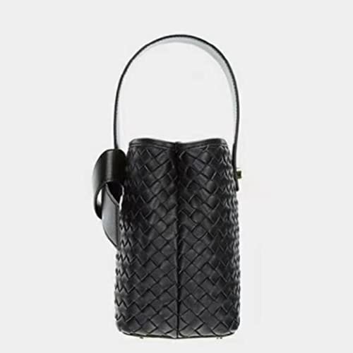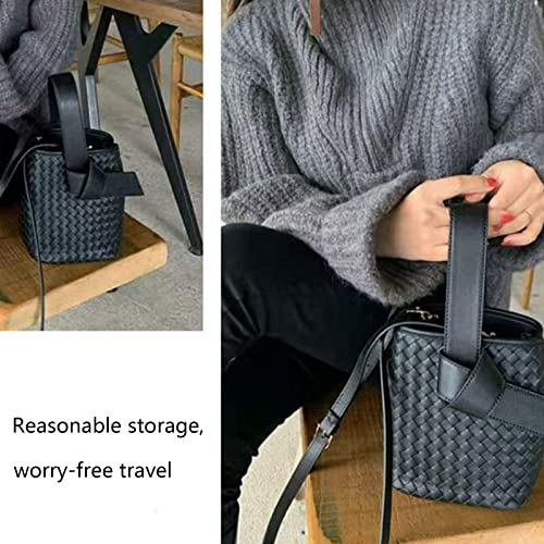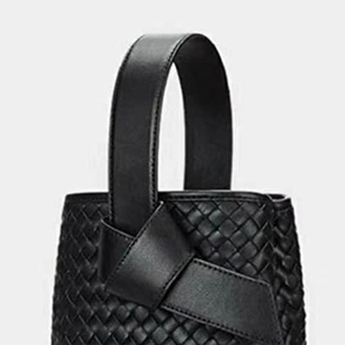Specification: Handgeweven tas, vroege lente nieuwe Messenger Bag Fashion Lace Up draagbare emmer tas, veelzijdige schoudertas. (Color : Black, Size : 5.51in*6.89in*3.94in)