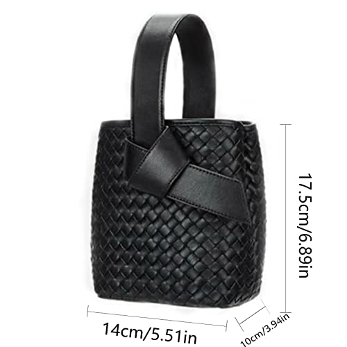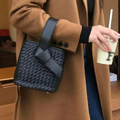 Handgeweven tas, vroege lente nieuwe Messenger Bag Fashion Lace Up draagbare emmer tas, veelzijdige schoudertas. (Color : Black, Size : 5.51in*6.89in*3.94in)