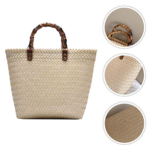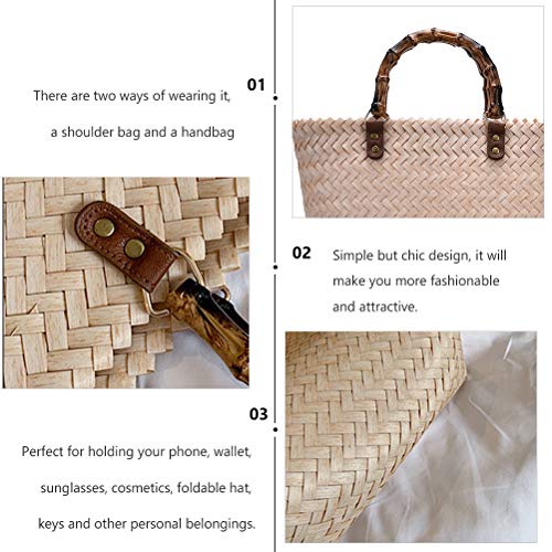 Specification: Strandtas, strandtassen for vrouwen, stro -tassen for vrouwen, geweven strandtas, 1 st eenvoudige zomer geweven tas schoudertas retro casual handtas for vrouwen