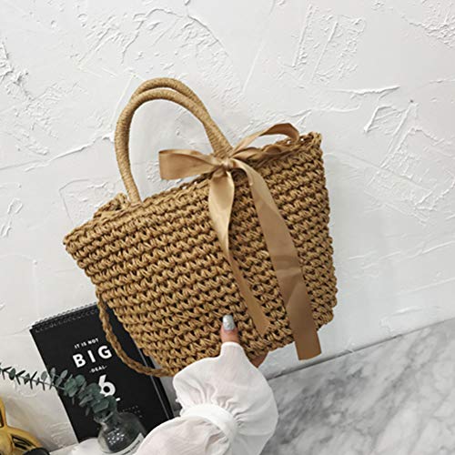 Strandtas, strandtassen for vrouwen, strozakken for vrouwen, geweven strandtas, 1 st geweven handtas geweven tas strandzak (Color : Brown)