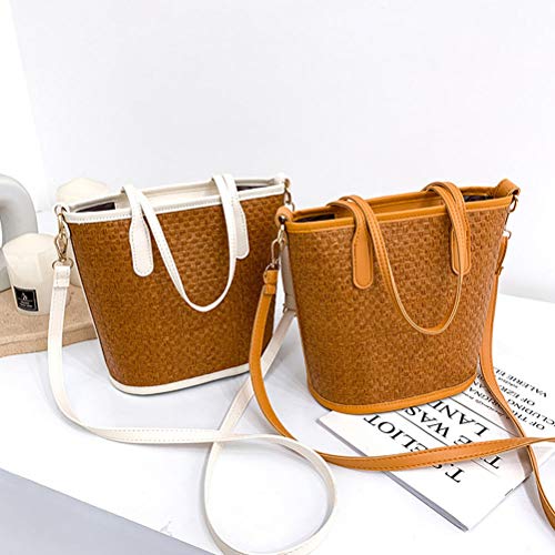 Strandtas, strandtassen for vrouwen, strozakken for vrouwen, geweven strandtas, 1 st veelzijdige schoudertas modieuze handtas dames opbergzak geweven tas (Color : Brown)