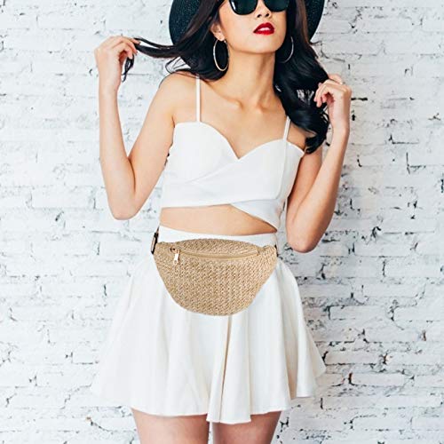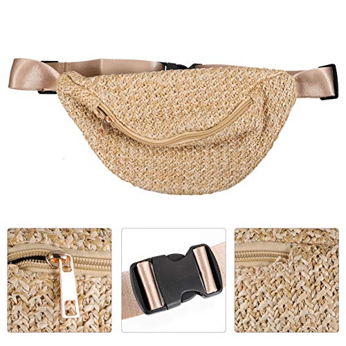 Specification: Strandtas, strandtassen for vrouwen, strozakken for vrouwen, geweven strandtas, 1 st zomers taille tas imitatie stro geweven tas borst aan het zakje kruistas (Color : Light Brown)