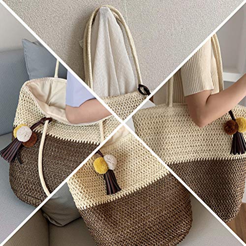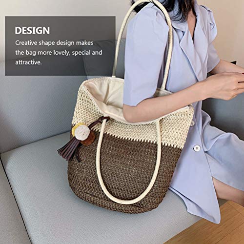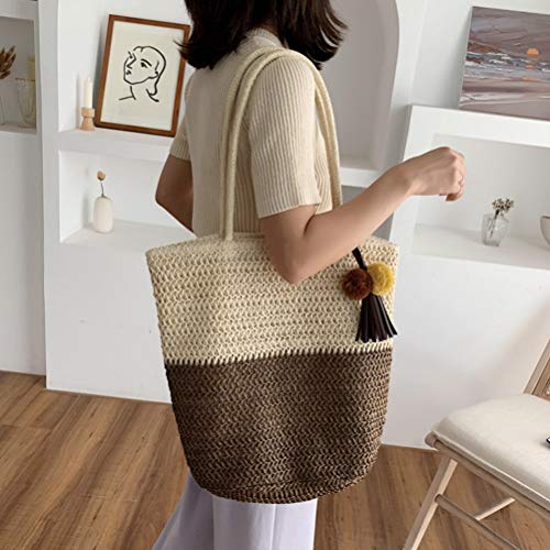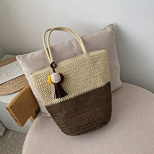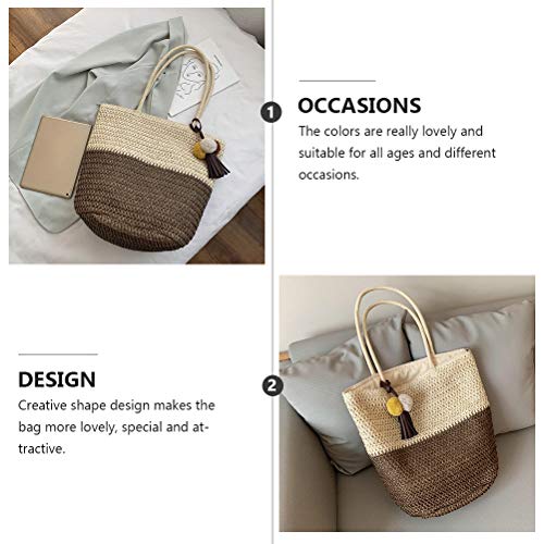 Specification: Strandtas, strandtassen for vrouwen, strozakken for vrouwen, geweven strandtas, 1 stc Draagbare tas weven schouderzakje stro geweven tas casual dames tas (Color : Coffee)