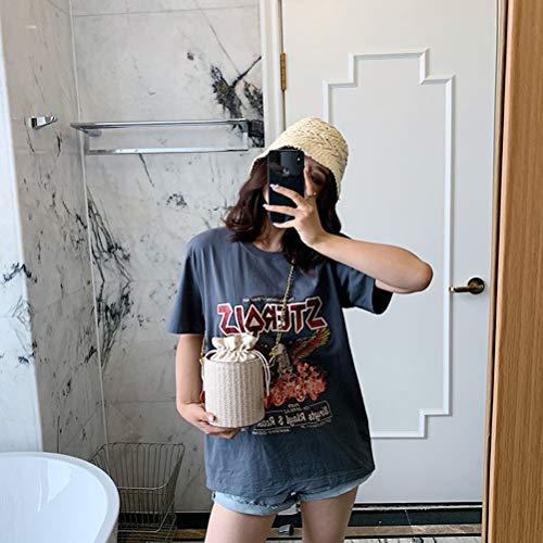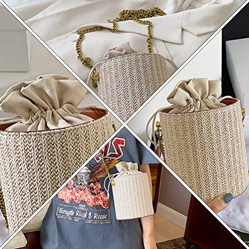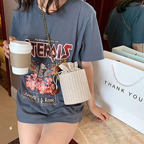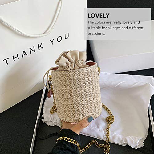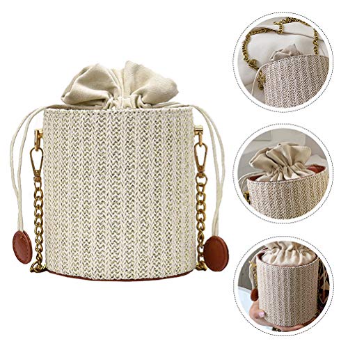 Specification: Strandtas, strandtassen for vrouwen, strozakken for vrouwen, geweven strandtas, trekkoordzak geweven ketting schoudertassen stro geweven opbergzak (Color : Beige)