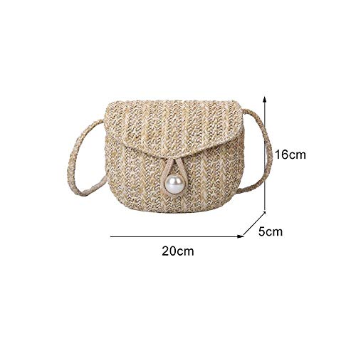 Specification: VIROYA strozak Geweven Strozak Zomer Vakantie Strandtas Met Parel Dames Geweven Emmer Stro Tas Hot Handtassen Clutch Voor Vrouwen (Kleur: Camel)