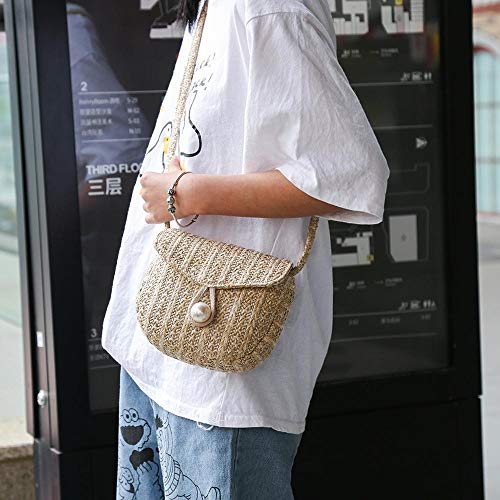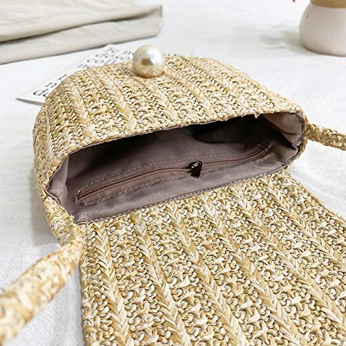 VIROYA strozak Geweven Strozak Zomer Vakantie Strandtas Met Parel Dames Geweven Emmer Stro Tas Hot Handtassen Clutch Voor Vrouwen (Kleur: Camel)