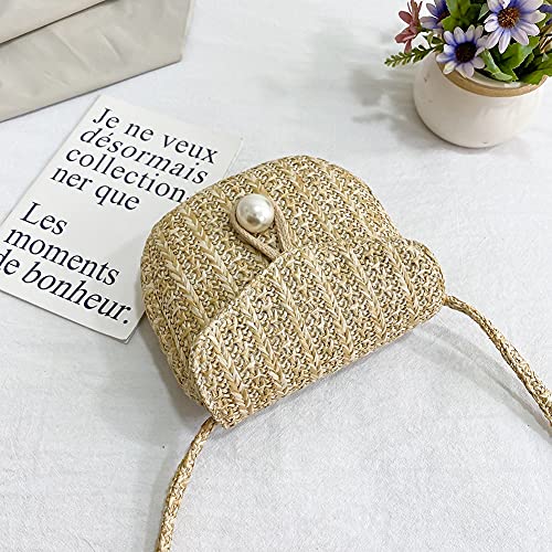 Rotan Geweven Stro Tas Zomer Vrouwen Parel Messenger Crossbody Tassen Meisjes Kleine Strand Purse Schouder Handtas