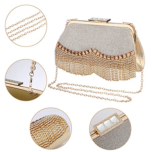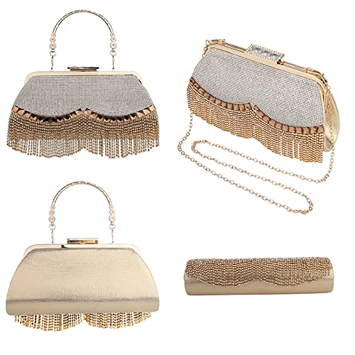 UBORSE Dames avondtas goud clutch bag strass handtas kettingen tassen kleine schoudertas glanzende hengseltas zilver voor bruiloft party disco, goud, F