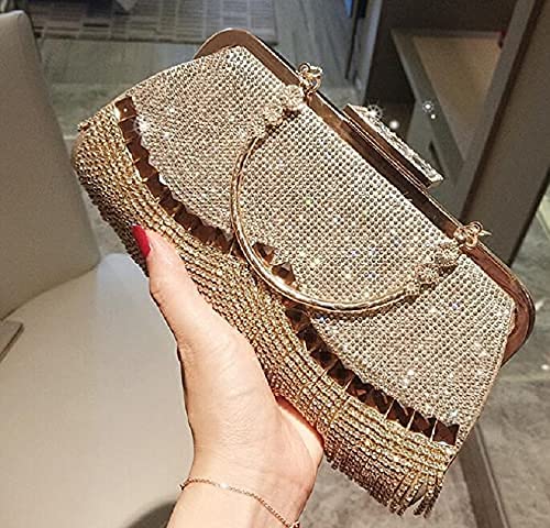 Specification: UBORSE Dames avondtas goud clutch bag strass handtas kettingen tassen kleine schoudertas glanzende hengseltas zilver voor bruiloft party disco, goud, F