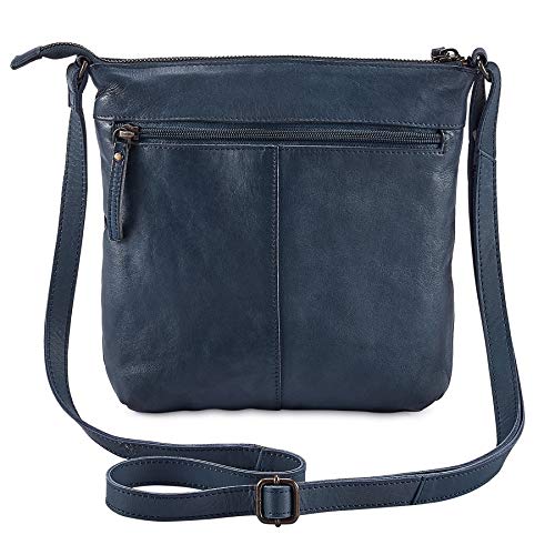 Cochoa Kleine damesschoudertas met 3 ritssluitingen, van echt leer, reistas, handtas