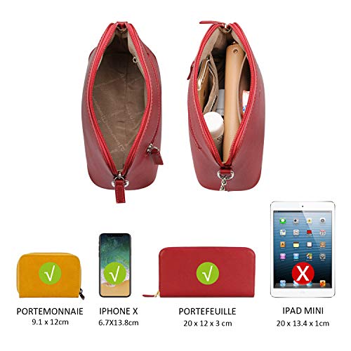 SCHOUDERBAND: 1 verstelbare schouderriem: te dragen als schoudertas of als crossbodytas. VAKKEN: Binnen: 1 vak voor mobiele telefoon, 1 ritsvak. Buiten: 1 ritssluiting achterzak.