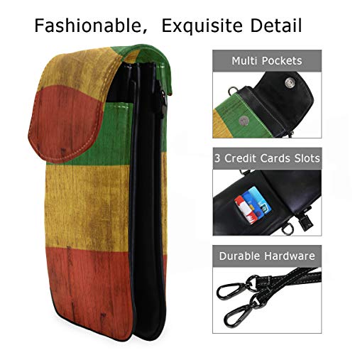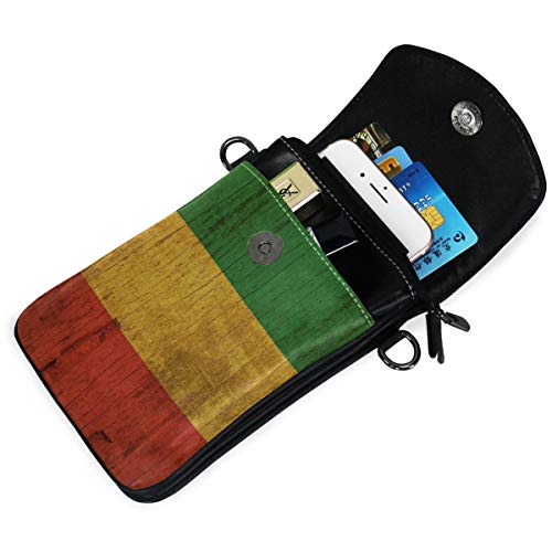 Specification: LORANA Rasta Vlag Houten Crossbody Tas Kleine Mobiele Telefoon Portemonnee voor Vrouwen