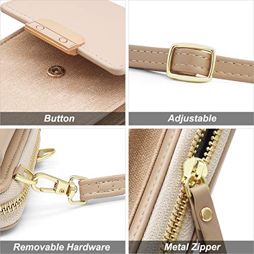 Hoogwaardig materiaal: Schoudertas voor mobiele telefoon van duurzaam PU-leer, hoogwaardige goudkleurige metalen onderdelen, zeer roestbestendig en de ritssluitingen zijn glad genoeg zodat je je geen zorgen hoeft te maken over vastzitten De ritssluiting en de drukknoopsluiting beschermen je telefoon, portemonnee en kaarten.