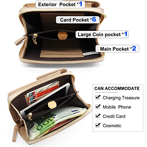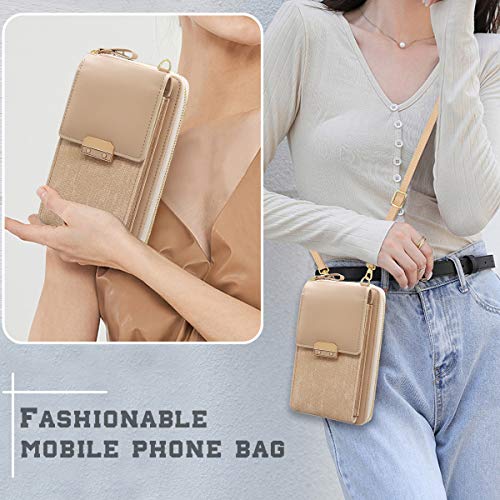 REETEE dames mobiele telefoon schoudertas en portemonnee, mobiele telefoon om te hangen PU lederen mini schoudertas clutch wallet