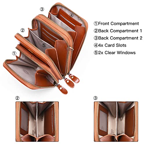 【 3 ritsvak】Deze crossbody telefoontas voor dames heeft 3 hoofdvak met 5 compartimenten, 2 doorzichtig venster en 4 creditcardsleuven. Genoeg ruimte om je mobiele telefoon, creditcards, paspoort, weefsels, make-up zoals lippenstiften, rekeningen, munten en andere kleine voorwerpen mee te nemen.