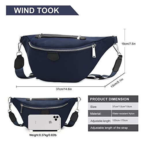 Wind Took Borsttas voor dames, crossbody tas, modieuze heuptas, grote schoudertas, sling tas, schoudertas voor reizen, festival, concert, vrije tijd, blauw, Large