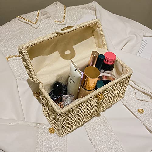 BIOSA Handgemaakte rotan tas zomer stro schoudertas handgeweven strand schoudertas boho mand vierkante doos handtas