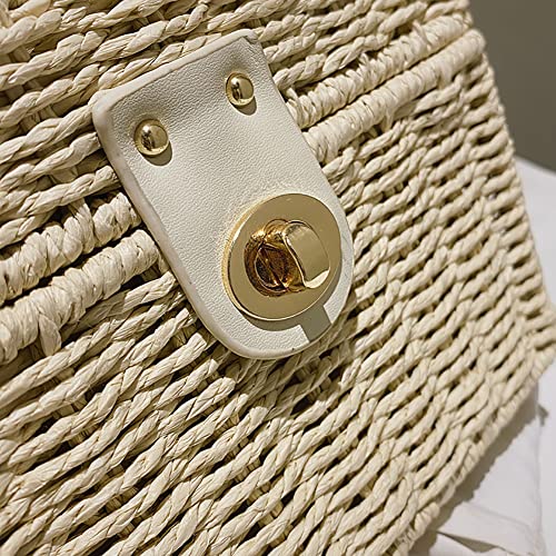 Retro strostijl, met houten handvat aan de bovenkant en leren schouderriem, eenvoudig en vrije tijd, elegant en modieus, het beste geschikt voor toerisme, winkelen en zee. Het stromateriaal houdt je koel en comfortabel als je het in een warme zomer draagt. Deze unieke handgeweven tas van stro is een uniek cadeau, dat door ambachtslieden handgemaakt wordt en ook het beste cadeau voor familie en vrienden is.