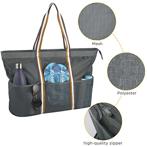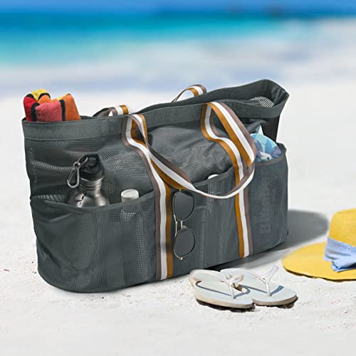 Mesh strandtas: het hoofdvak is groot genoeg om in de tas gemakkelijk te duik- en zwemuitrusting, strandhanddoeken, tijdschriften, pantoffels, zandspeelgoed voor kinderen of andere sportuitrusting mee te nemen
