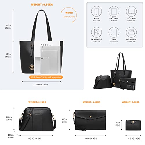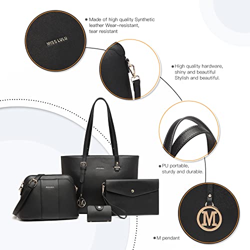 Specification: Miss Lulu Schoudertassen voor dames, tas, shopper, handtas voor dames, grote tas, dames, polstasje, verstelbare schouderriem, 4 stuks handtassenset
