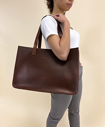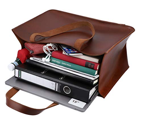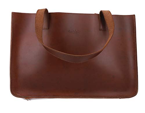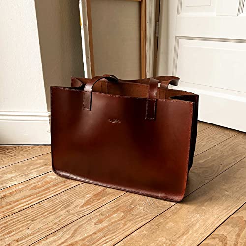 Gusti Shopper leer – Agatha handtas lederen tas hengseltas laptoptas unitas kantoortas vrijetijdstas leer, walnoot, Eén maat