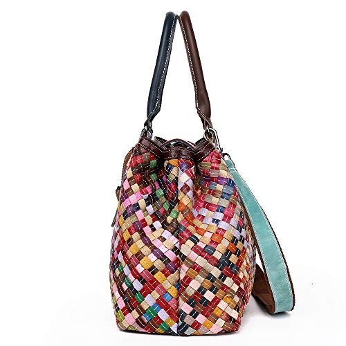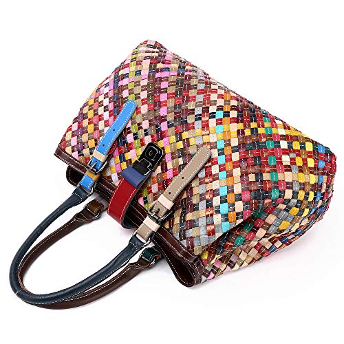 💙 【DESIGN】 Deze kleurrijke tas past op elke kleding en is een echte eyecatcher. Verschillende kleurblokken worden onregelmatig in elkaar gezet, de individuele kleuren van de velden zijn uniek en verschilden van de foto. De binnenkant van de leren tas is gevoerd met hoge kwaliteit, de ritssluiting is glad en alle naden zijn schoon.