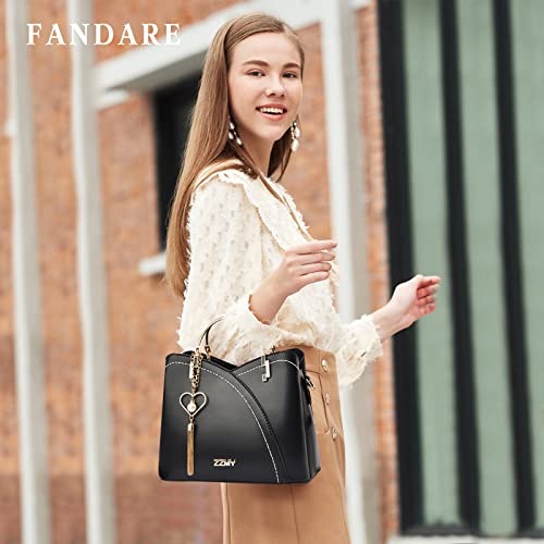 FANDARE Handtassen voor dames, tote tas, schoudertas, waterdichte schoudertas, draagtas, PU-leer, hengseltassen met kwast, voor werk, school, shopper, reizen