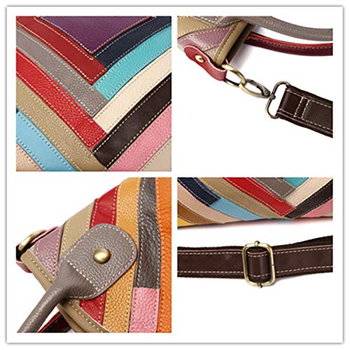 💙 【DESIGN】 Deze kleurrijke tas past in elke kleding en is een echte eye-catcher. Verschillende kleurblokken zijn onregelmatig in elkaar gezet, de individuele kleuren van de velden zijn uniek en wijken af ​​van de afbeelding. De binnenkant van de leren tas is gevoerd met hoogwaardige kwaliteit, de ritssluiting is glad en alle naden zijn schoon.