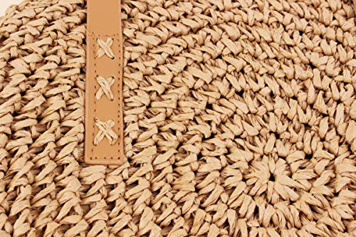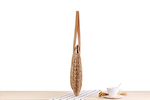 Specification: VOANZO Handgemaakte Grote Capaciteit Holle Circulaire Strozak, Modieuze Vrouwelijke One-Schouder Geweven Zomer Strandtas (Bruin)