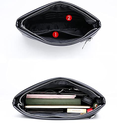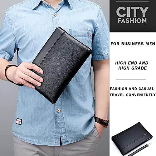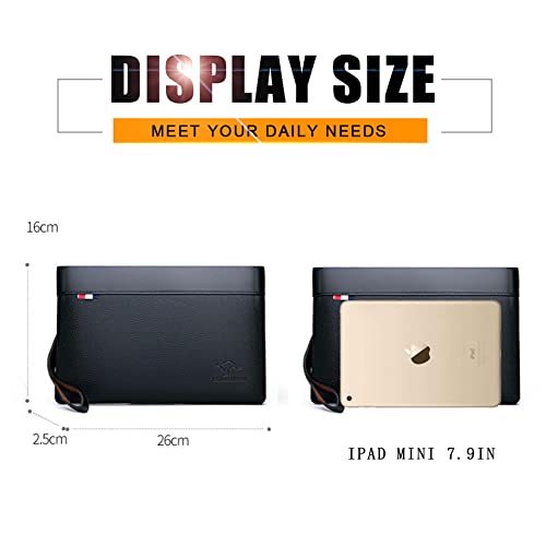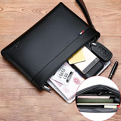 Eshow Polsbandtas echt lederen clutch tassen voor mannen polsbandje ritssluiting 7,9 inch zwart