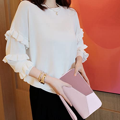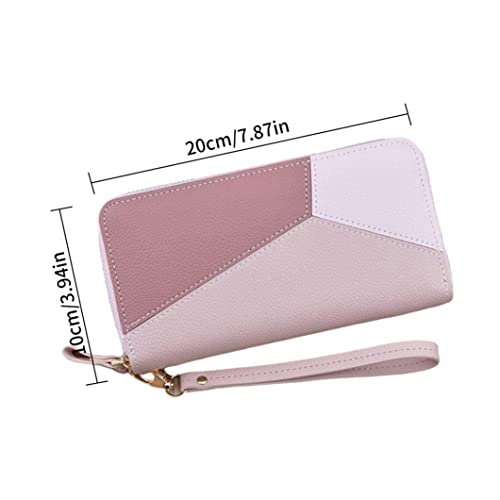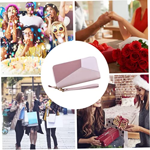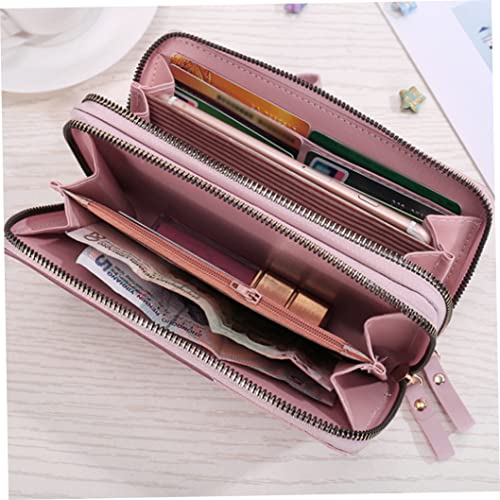 Specification: Vrouwen Lederen Portemonnee Lange Grote Capaciteit Telefoon Opslag Clutch Bag Met Polsbandje Dubbele Rits Roze.