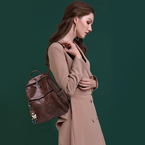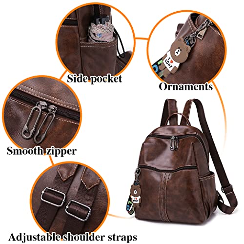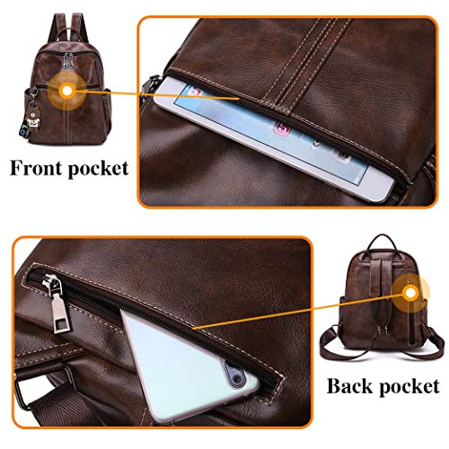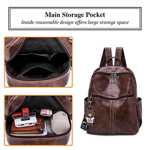 BAGZY Dames Rugzak Mode Portemonnee Schoudertas Casual Schooltassen Anti-diefstal Lederen Rugzak Lichtgewicht Waterdichte Reisrugzak Voor Dames Meisjes Bruin