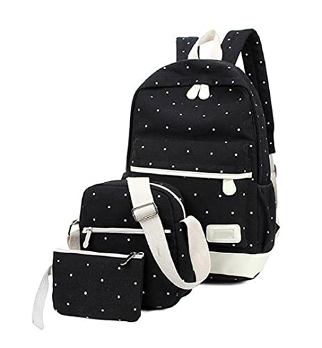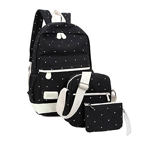 Specification: 3 stcs meisjes rugzak set canvas dots daypacks waterdichte verstelbare schooltassen zwart terug naar schoolbenodigdheden